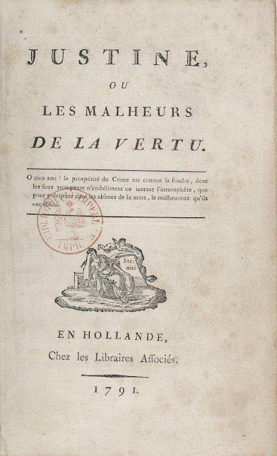 Alors, ce défi « Badinage & libertinage » était l’occasion de tenter l’aventure de la littérature sadienne. Avec Justine, donc. La faute à Crepax, je vous disais. Et, tant qu’à faire, dans l’édition originale de 1791. Ou plutôt son fac-similé numérique, gracieusement mis à disposition sur gallica.